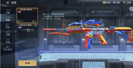 王者之戮冠军LGD以R.LGD战队的战队标志蓝红色为基调,金色蓝色红色遍布王者之戮的枪身,蓝色霹雳闪电贯穿于枪身上部!R.LGD战队的logo也镶嵌于王者之戮的枪身侧面,时刻提醒着自己是一把卫冕冠军的限定皮肤!
