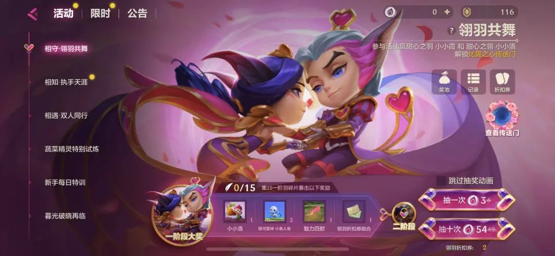 (4)活动分为两个阶段,首次进入活动仅可参与第一阶段,抽中“甜心霞洛自选”即可解锁第二阶段,翎羽币可用于第一阶段和第二阶段抽奖。