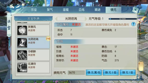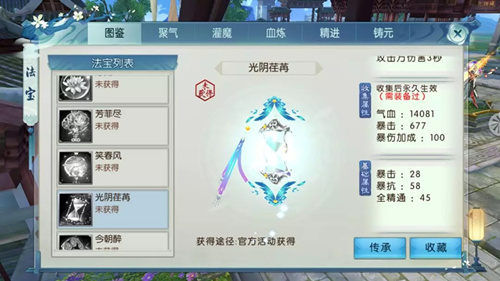 诛仙手游法宝光阴荏苒属性介绍: