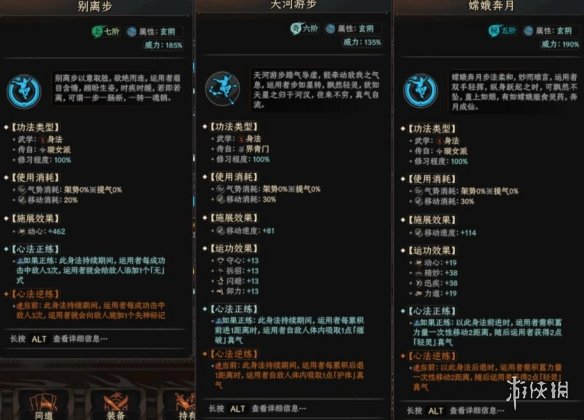 越阶战斗:每次战斗开始敌人的轻灵真气过高,应该用嫦娥奔月拉开距离同时增加自己的轻灵值,增加到对面追不上你就合适了,不需要超过敌人,你学了仙衣法的情况下 会发现对面跟卸了一条腿。