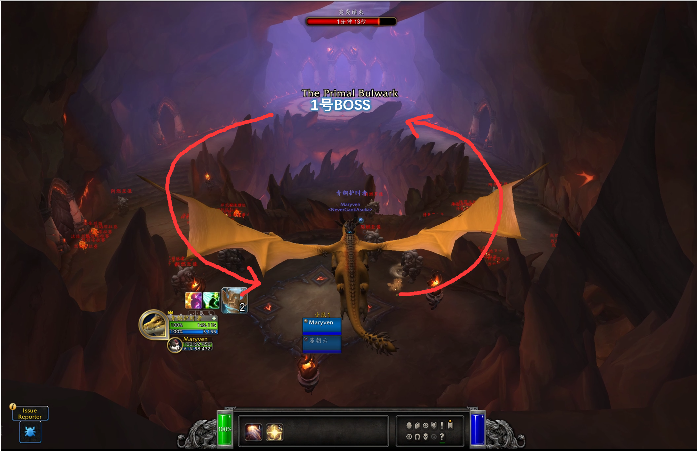 左右两条路都可以达到一号BOSS,所以只需要事先约好某一条路,猛砸巨龙的技能清理小怪即可