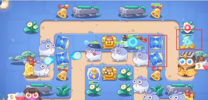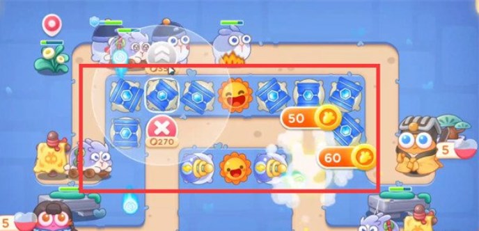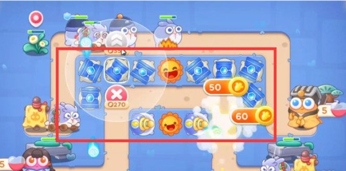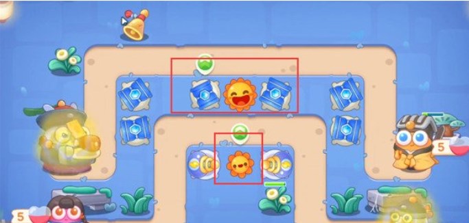 4.优先将宝箱打掉,掉落的炮塔是太阳花,在太阳花周围放置冰锥塔,有钱就升级到满级;