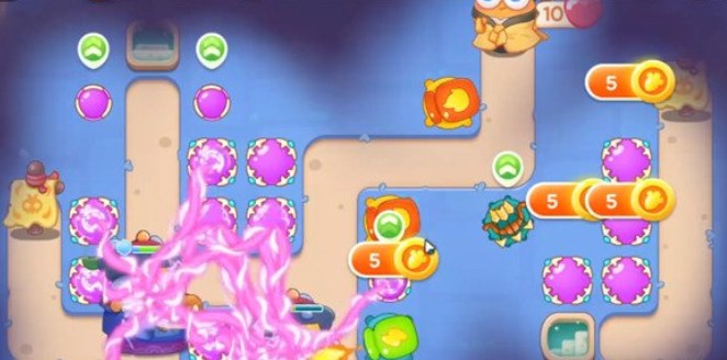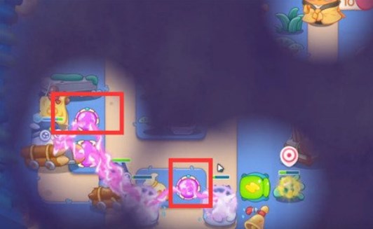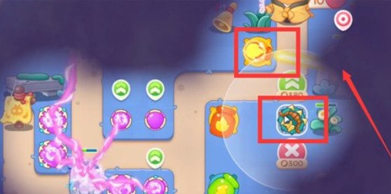 8.优先锁定会释放出果冻的炮塔,最终炮塔摆放位置如下图: