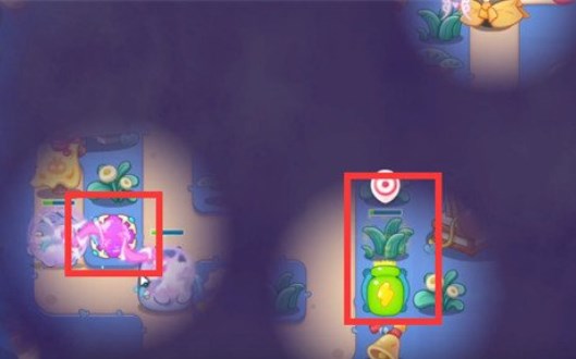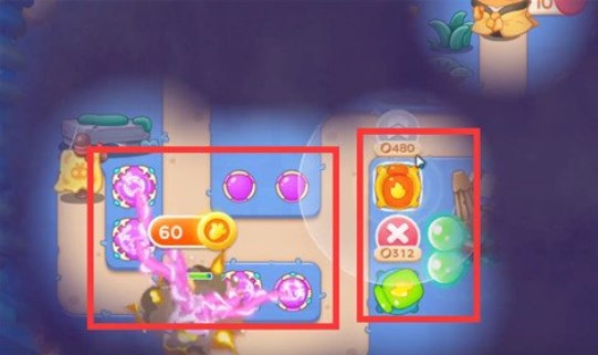4.及时点掉果冻,右边的炮塔向右继续拆除,空格处放多重箭和火炮瓶,锁定右边的障碍物;