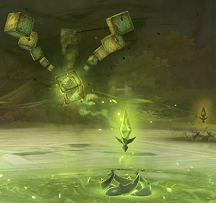 ●无相之草变为球形,跳起后如巨石般落下,重复攻击三次。球形状态可使用火元素提前击破并解锁成就,攻击结束或被击破后暴露核心。