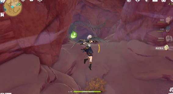 然后照着下图的方向跳下去,再回身,向着洞窟里面飞,一路走到尽头,就可以发现洞窟里的无相之草boss了。