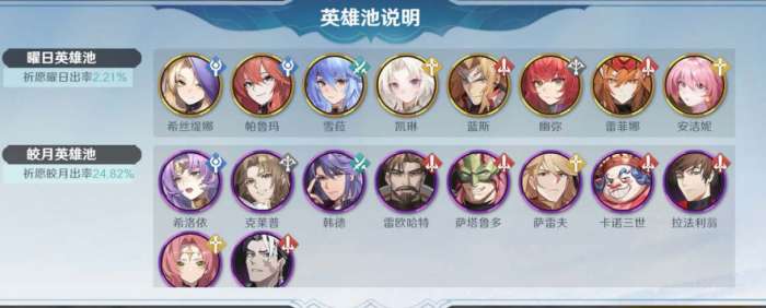 玩家们入门使用的英雄为第四级,中后期我们将以曜日和皎月为核心,如果是长期玩家建议直接祈愿发展曜日英雄,直接跳过二三四级。