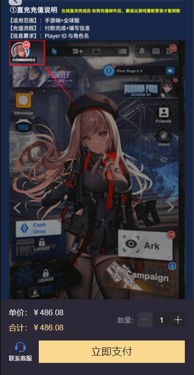 第五步:付款完成后,代充需要填写区服和账号信息,请正确填写账号信息,如果有疑问,可以点击左下角客服按钮,直接询问客服。