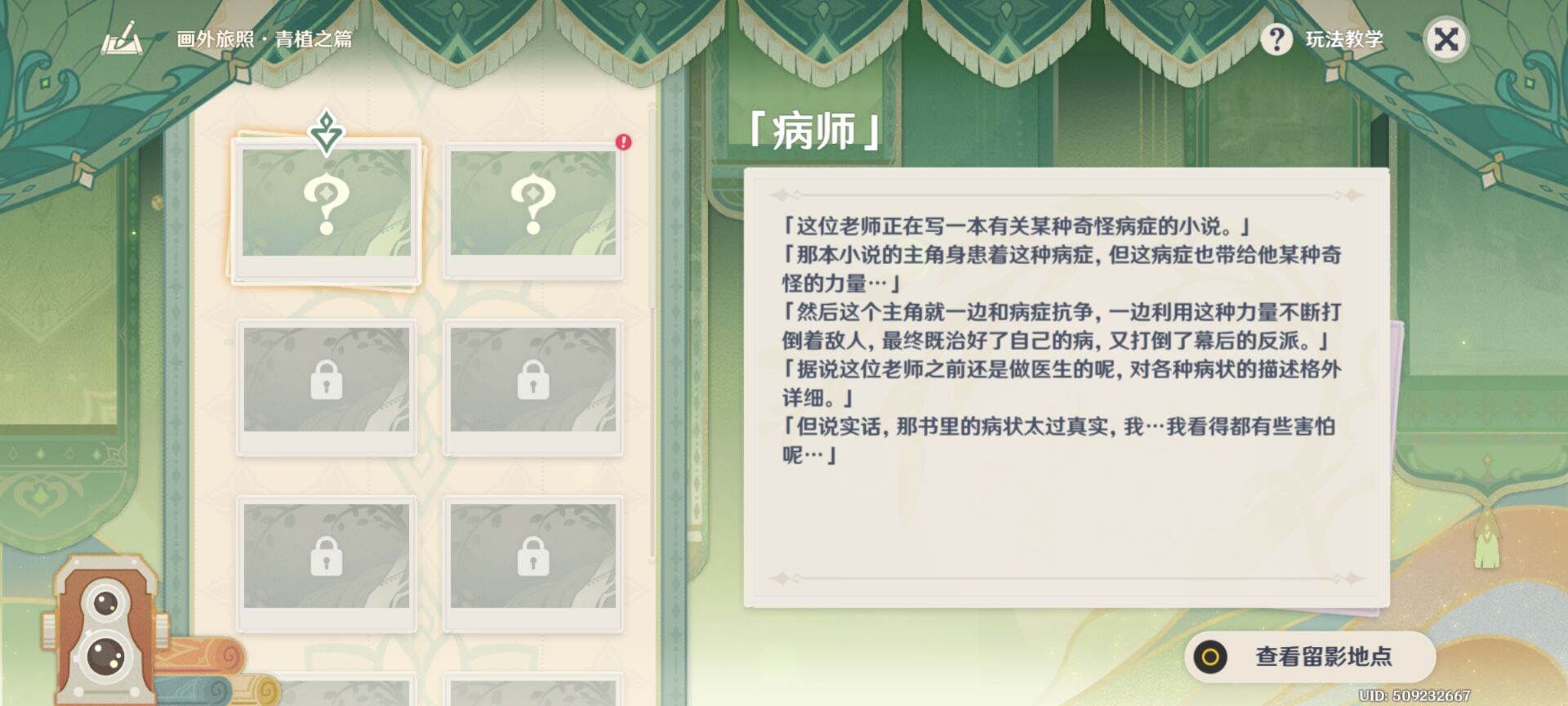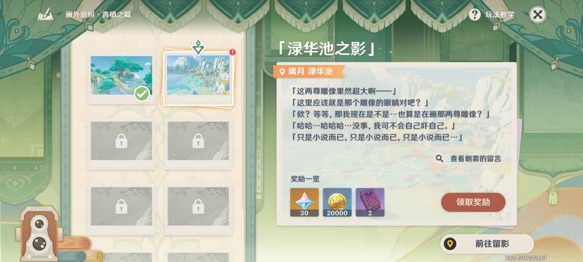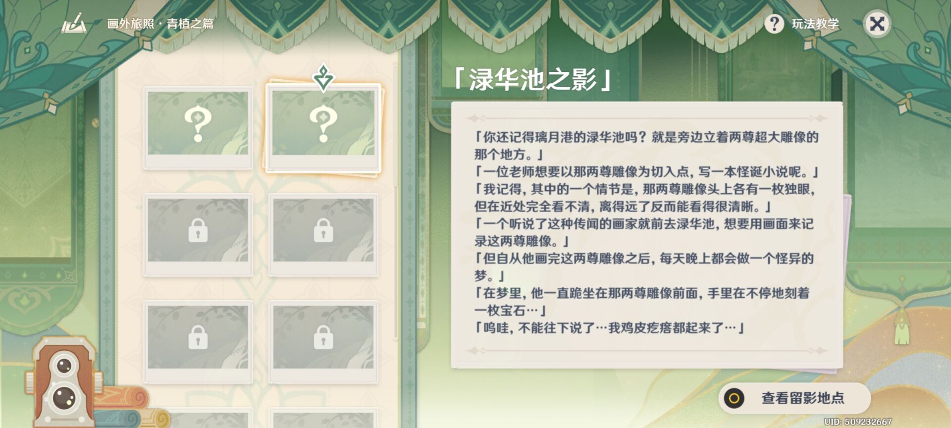 原神画外旅照青植之篇第一天攻略-青植之篇第一天照片位置分享