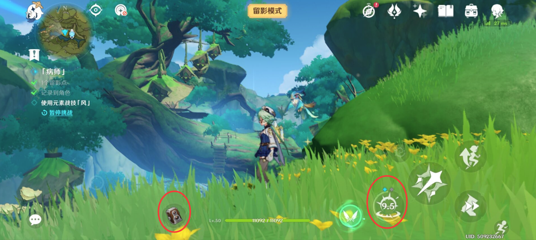 16、进入留影模式,首先点击元素战技,接着点击道具留影机。