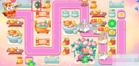 2、开始的时候放置一个风扇,先把下面的壶打了,放上元宝,之后在清理怪物。