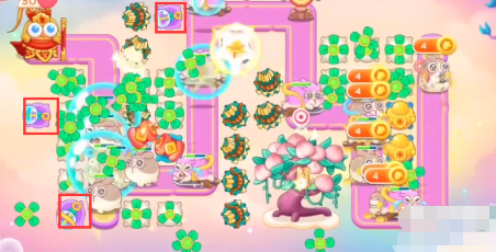 5、仙女出现,根据仙女出现的位置放置炮塔,打完仙女之后在各个区域里面放置泡泡塔减速。