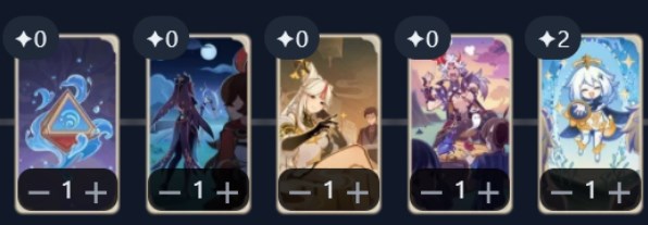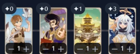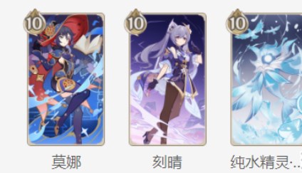 1、角色卡:刻晴、纯水精灵、莫娜。