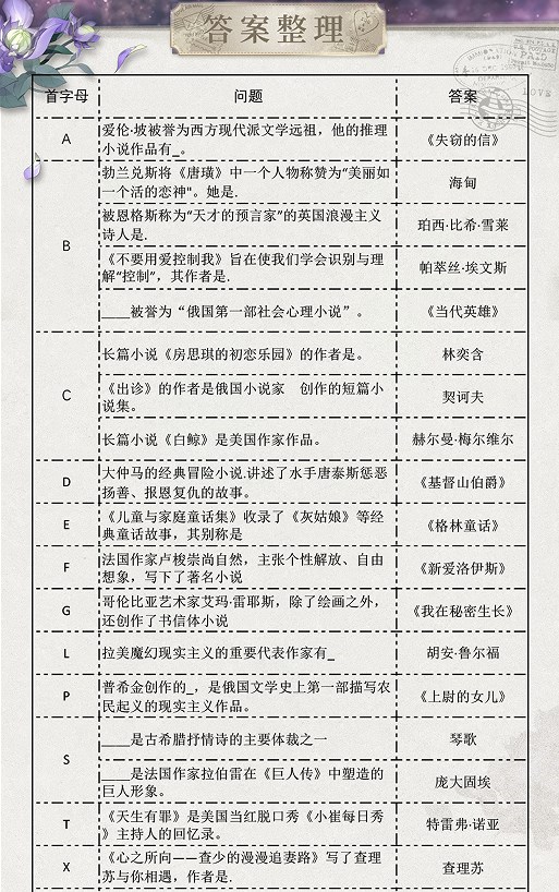 光与夜之恋长思今寄答案大全-长思今寄书海文渊答案攻略