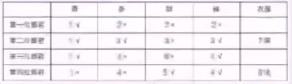 并根据每一个信息点,在表格中标"√"(喜欢)或"x"(不喜欢),衣服的颜色则填写"深"或"浅".