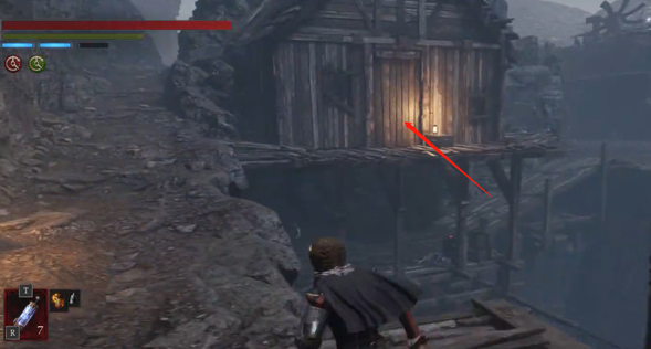 1、首先来到不毛沼泽沟壑,找到这个建在悬崖上的房子。