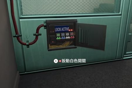 4、然后来到二楼的安全门前,打开保险箱,扳动刚才显示颜色的开关就可以了。