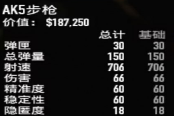2、AK5,该武器的面板非常出色,伤害和射速都很高,可以安装快拔弹匣,隐匿度高,不需要dlc。