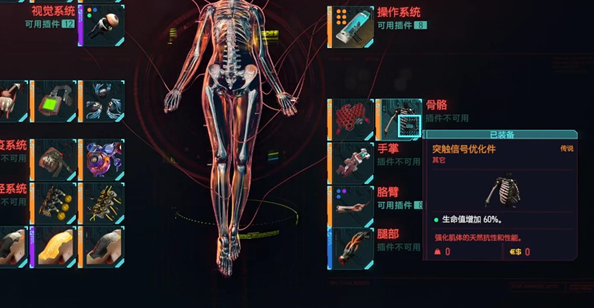 3、玩家也可以通过安装一些义体来增加自己的生命值,例如传说级的突触信号优化件就可以增加玩家60%的生命值。