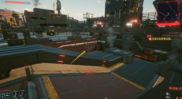 3、到荒坂工业园传送点,视角往下能看见一扇门,开门进入,猫粮就在箱子上。