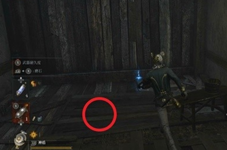 6、先赶到边上的房间,在房间里有一些道具,其中一个道具是地面木工板,会掉落到下一层。