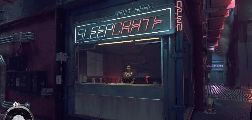 睡眠箱位于沃利星星系沃利阿尔法星上霓虹城中的【EBBSIDE】区域,可以从写有【EMPORIUM】和【TERRABREW】标识之间的入口前往【THE EBBSIDE】(右侧)。