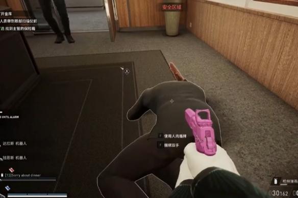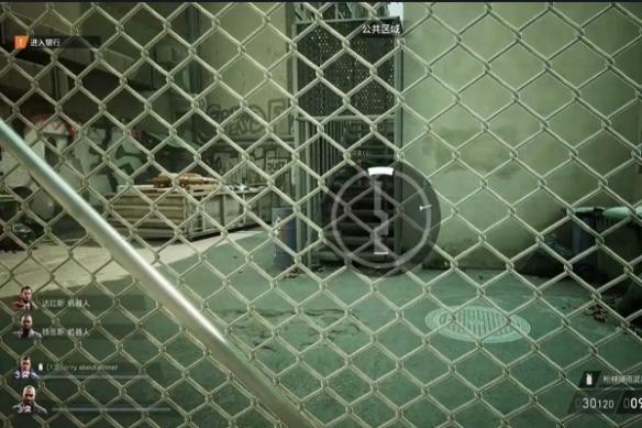 1.开始游戏后首先需要进入银行,有很多警卫在巡逻,可以从这个铁网处进入,