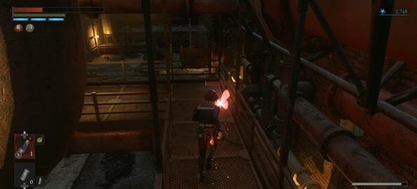 2、在如图所示的场景中我们会遇到次元蝶,把他砍死即可获得“动力曲柄”。