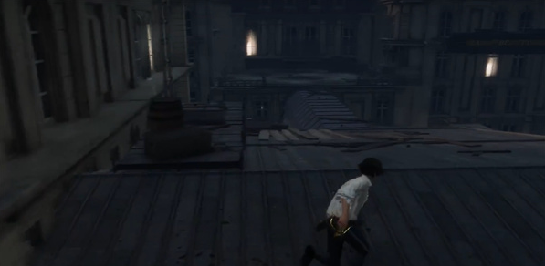 2、从这里的通道上走过去,然后左转进入房间里,再左转跳到下面的空地上。