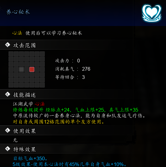 玩家在使用上这个之后就可以学习上对应的养心秘术,整体上的效果非常的不错。