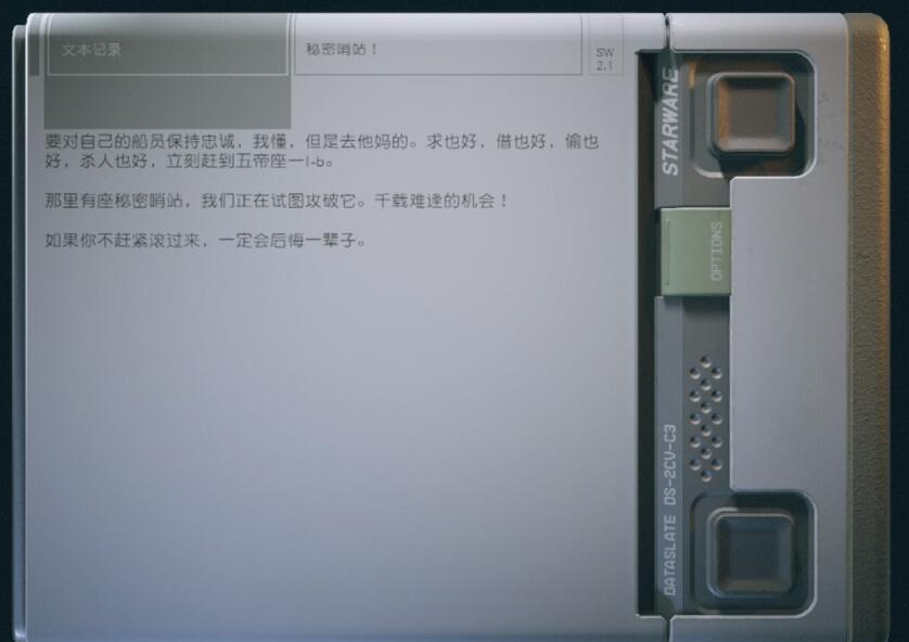 1.在完成主线任务【老住区】之前前往太阳系月球【环宇新型造船厂】击杀那里的敌人,敌人会随机掉落笔记【秘密哨站!】(控制台ID为001CCFB7),如果没找到的话也可以通过搜刮太空劫匪或黄道佣兵团等敌人尸体来获得。