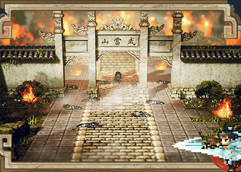 游戏使用虚幻4引擎创造了一种新颖的像素画风模式:将传统的像素画面切入3D场景之中,使二者进行了有机融合。游戏不仅复刻了MS-dos时代的像素武侠游戏,也将带来现代化的视觉效果和更优化的游戏体验。