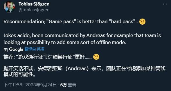 Sjögren表示:“开个玩笑,Andreas已经传达,团队正在考虑添加某种离线模式。”