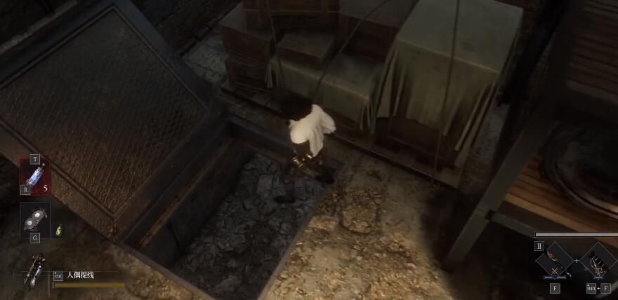 2、到二楼后进入左手边的房间,从箱子后的洞口直接跳下去;