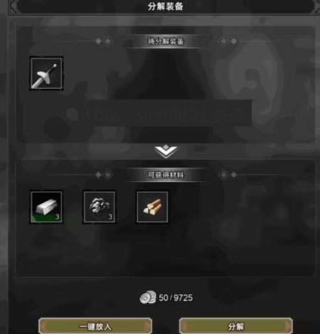3、再分解获得的材料中,【铁锭】每一个售价是100,【煤矿】【木材】每个售价50。