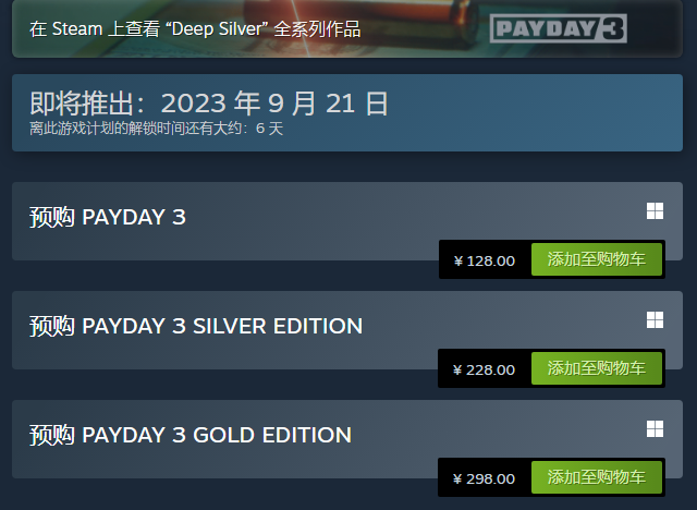 2、收获日3的价格按照不同版本的不同,分别售价为128元、228元和298元。