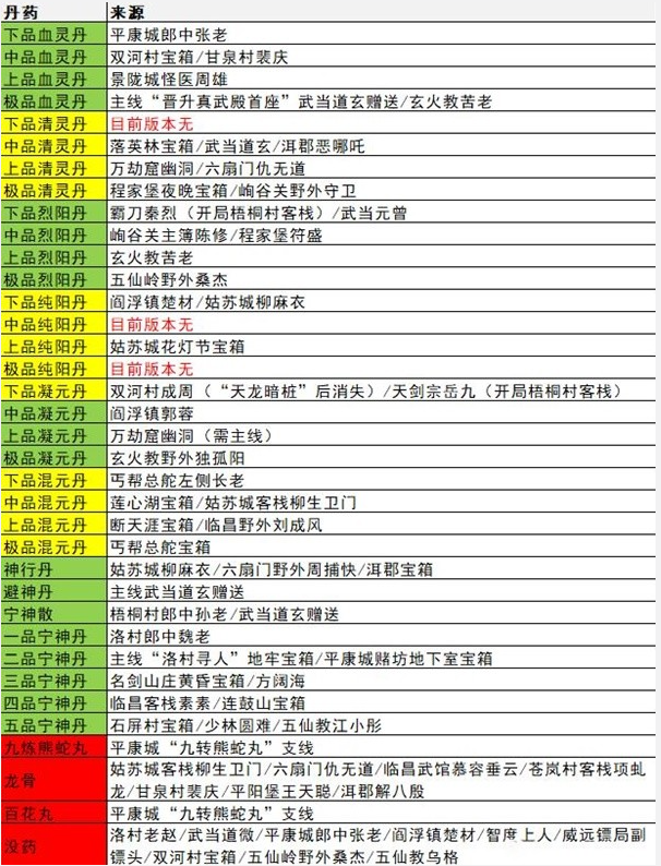 丹药作为游戏里的道具之一,可以提供给大家非常不错的属性加成,以下是所有丹药的获取位置分享: