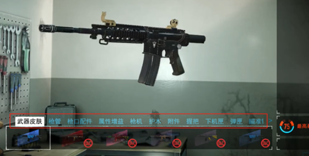 三、注意,在购买完成后我们得到的是一把裸枪,这把枪是没有任何配件的,需要我们在枪械界面手动对枪体进行改装,再改装完毕后我们还可以选择一个自己喜欢的皮肤进行装备。