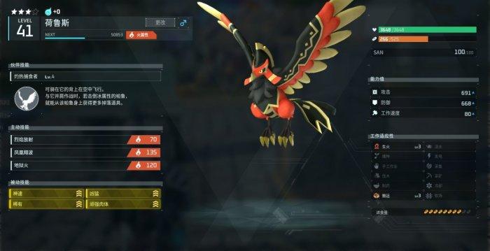 在打工部分,朱雀3级吹火并且属于最大体型帕鲁,荷鲁斯3级吹火+3级搬运属于大体型帕鲁。