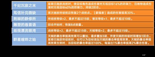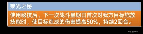 不过缺点就是……星期日并不需要怎么普攻恢复战技点,基本只能通过【额外能力·主日渴慕】每2回合恢复1点,所以双爆辅助的特效有较长的真空期,但也已经很强了。