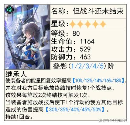 知更鸟的专武,给星期日的攻击力部分没用,但回能和全队增伤很有用!也是专武级别的了。