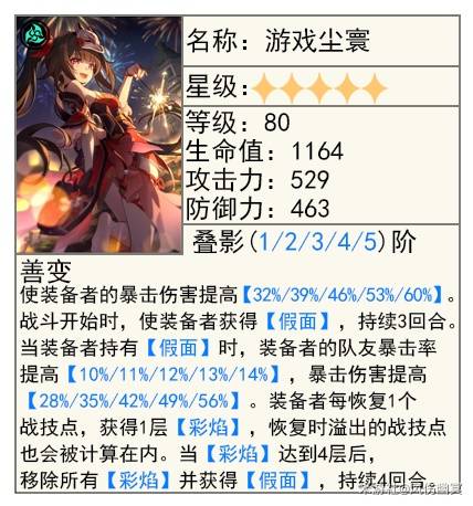 花火的专武,给星期日爆伤部分可以提升大招的爆伤辅助,并且还能提高队伍的暴击率!配合自己的天赋就更高了!而且还有爆伤提升!自己本身就是提升暴击爆伤的辅助,加上这个就更高了!