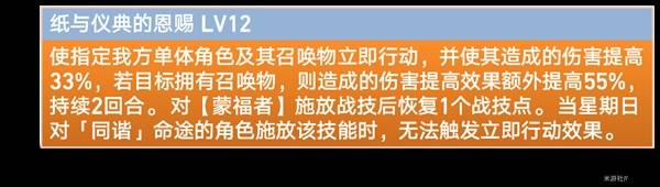 如果该角色有自己的大招buff时,对其放战技可恢复战技点1点。