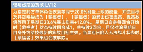 4.大招单体恢复能量,并使该角色的召唤物爆伤提升;
