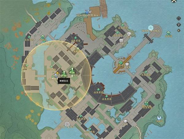 首先我们来到琅嬛地图中的琴洲城,如图所示小盾牌处