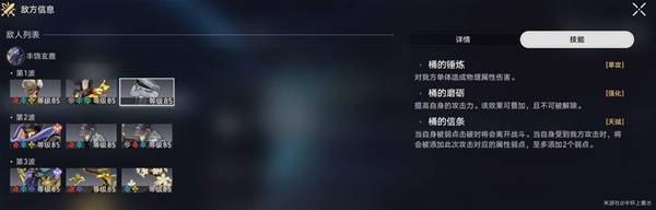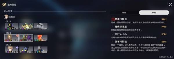 这个敌人本身强度一般,配合【同音共律的来日】的【异梦】状态会产生质变,由于异梦状态下我方角色不能行动,同时受到伤害大幅提升,因此应对第一波次主要还是要解控;需要注意的是【使者带锁链】蓄力状态下尽量所有角色都攻击一次触发锁链(可以分摊伤害),这样可以分摊伤害避免输出猝死;