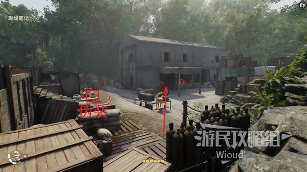 出来后发现来到了基地的右边区域,左前方的桌子上可以拿到这个地图的军队伪装,完事进入右前方的大型建筑。
