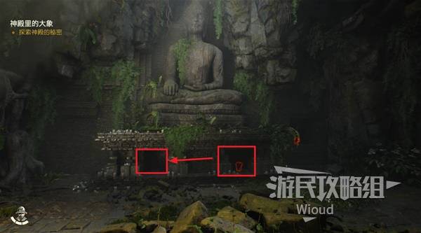 回到大厅将佛像右侧的雕像放到中间,然后将左边隧道里的雕像拿出来放到右侧,此时三个雕像都位于大厅大佛像下面的洞里,完成解谜。