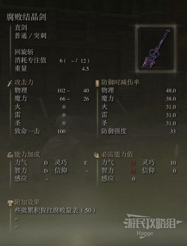 《艾尔登法环》腐败结晶剑面板与获取攻略 腐败结晶剑怎么获得