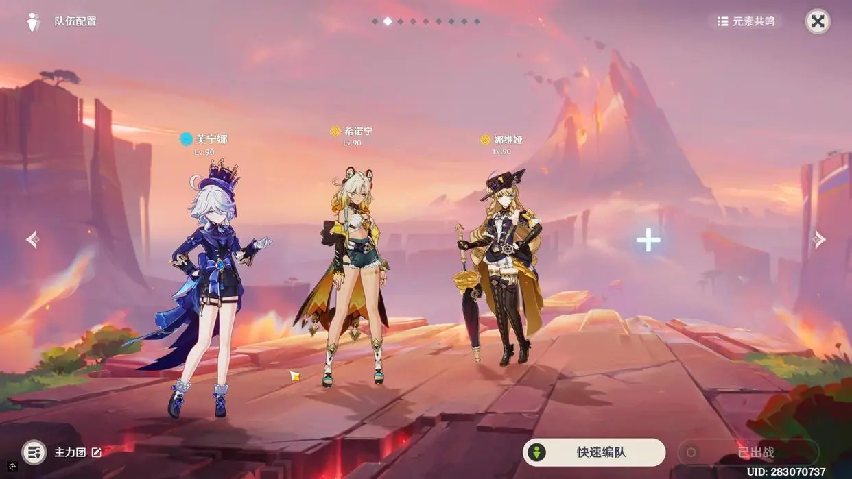 第一队:希诺宁、玛薇卡、那维莱特+希格雯,这个配队的目的,还是让那维莱特作为主要输出来的,而希诺宁负责增伤和减抗,而玛薇卡不充当主C,而是担任了副C和后台挂火的准备,而那维莱特负责主要输出,而我们的希格雯,主要还是负责奶妈位的,同时,作为水系角色捎带脚兼顾一下那维莱特的双水共鸣,然后,希格雯就没有什么事情了。
